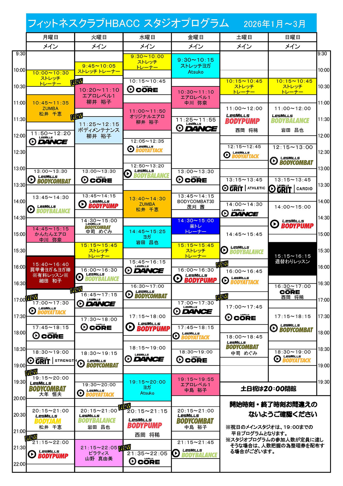 | 11日 | BODY COMBAT 60 | 中島 |